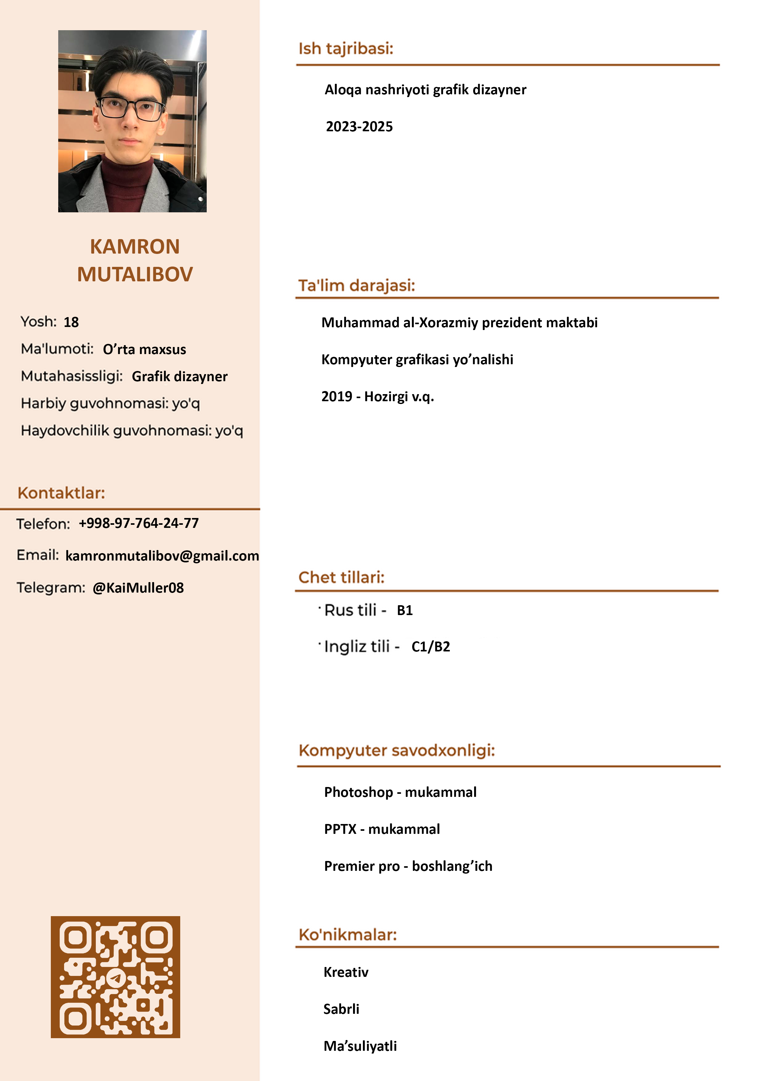 Logo ustida ishlab sotganman; Ko'plab posterlar yasaganman; O'qish, ish va universitetlar uchun power pointlar ishlaganman, hech qanday canvasiz.